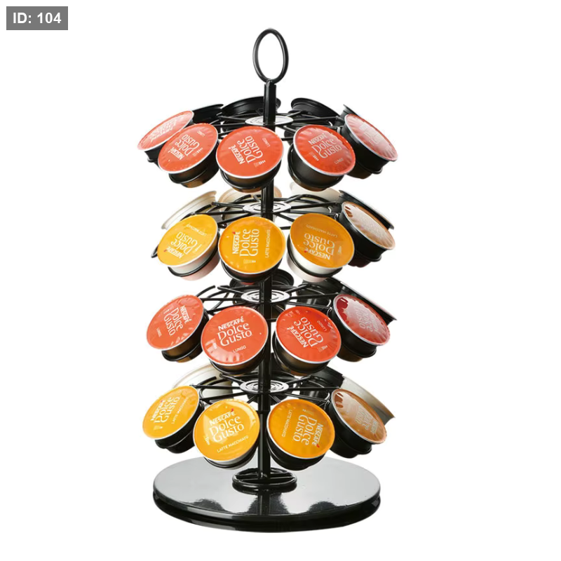 بالإضافة إلى حامل كبسولات الدولتشي دوّار بتصميم عملي وأنيق يساعدك على ترتيب الكبسولات والوصول إليها بسهولة.