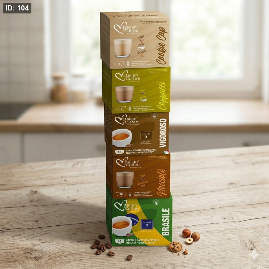 يأتي البكج مع 5 علب كبسولات بنكهات من اختيارك لتجربة قهوة متنوعة تناسب ذوقك،