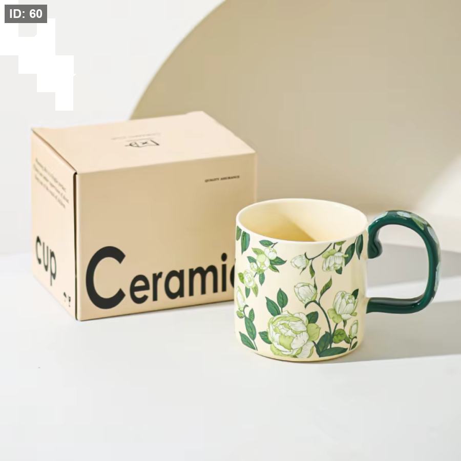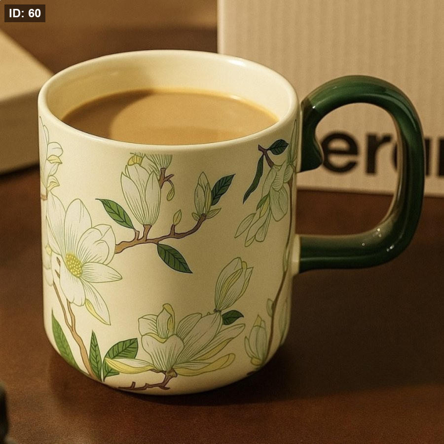 يأتي هذا المج بتصميم أنيق يجمع بين البساطة واللمسة الفنية بفضل نقوش الأزهار الدقيقة التي تمتد بانسيابية حول الكوب، مما يمنحه مظهراً راقياً يناسب الاستخدام اليومي والمناسبات الخاصة. يتميز المج بجودة عالية، مع مقبض مريح بلون داكن يضمن ثباتاً وسهولة في الإمساك، بينما يوفّر حجم الكوب المناسب تجربة مثالية للاستمتاع بالقهوة أو الشاي. تصميمه المتقن يجعله إضافة جميلة لأي ركن قهوة، كما يجعله خياراً مميزاً لتقديم هدية راقية
