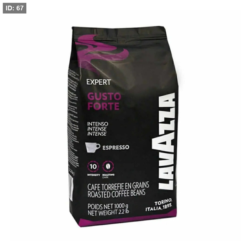 حبوب قهوة لافاتزا غوستو فورتي، 1 كجم، روبوستا 100%، تحميص داكن، بإيحاء الكاكاو وكريمة كثيفة.